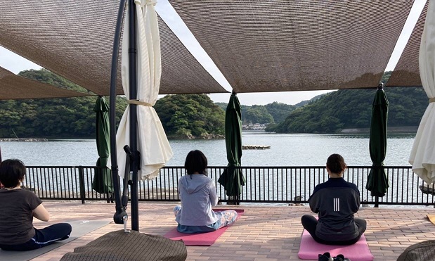 「海の上のテラス」は海の上に建つテラスです。目の前に赤水湾が広がり、空や海を眺めながら自然の中でのYOGA体験です。YOGAインストラクターはインド古典ヨガマスタースダガーのもとでTTC200シニアヨガを習得された黒木ゆみこ先生です。ヨガの後、ランチをご用意いたします。テラスでお召し上がりください。