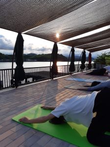 「海の上のテラス」は海の上に建つテラスです。目の前に赤水湾が広がり、空や海を眺めながら自然の中でのYOGA体験です。YOGAインストラクターはインド古典ヨガマスタースダガーのもとでTTC200シニアヨガを習得された黒木ゆみこ先生です。ヨガの後、ランチをご用意いたします。テラスでお召し上がりください。