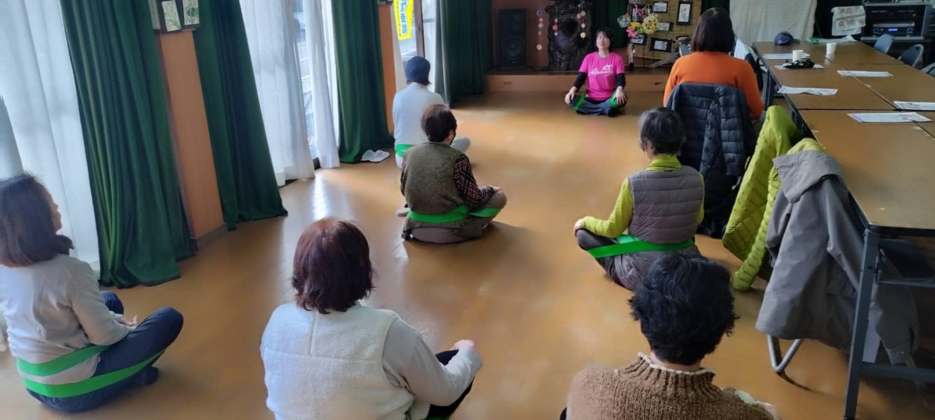 アルファビクスは、ヨガと独自のゴムバンドを組み合わせた、ストレス解消と共にバランスのとれた健康な心身をつくる新しいスポーツです。簡単だから誰でもでき、ずっと続けられます。70歳、80歳になってもできます。若い人のダイエットや、生活習慣病予防や介護予防にもなり、アルファ波の音楽で心も身体もスッキリ!ゴムバンド貸し出しがあるので、手ぶらでも体験できます。